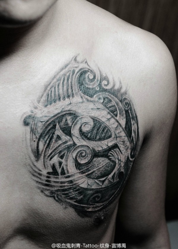 纹身图案胸部男 简洁大方的男生胸部纹身图案