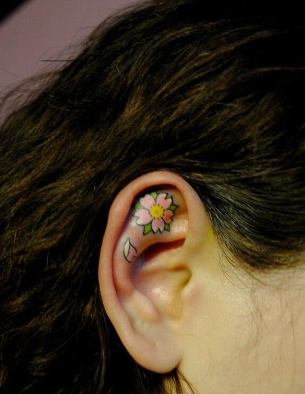 耳朵彩绘清新樱花刺青图片