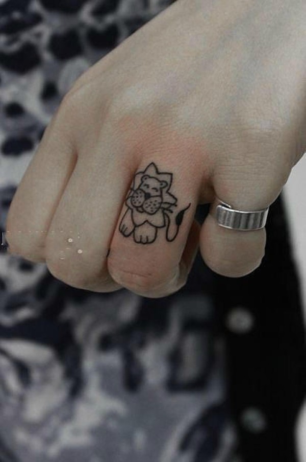 手指上可爱的卡通狮子纹身图案