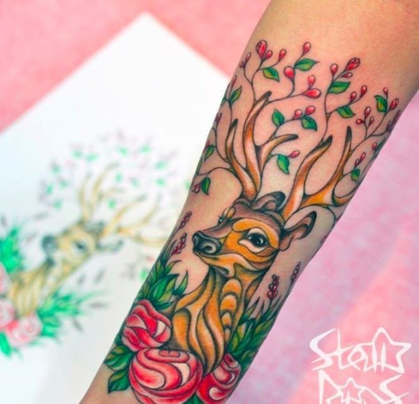漂亮的彩色纹身动物和植物纹身小花朵纹身图案