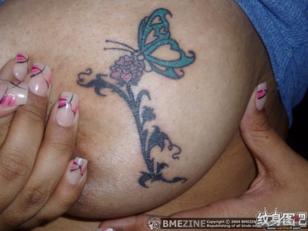 美女胸部采蜜的蝴蝶纹身