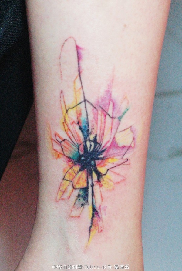 angelababy脚背彩色小花纹身图片