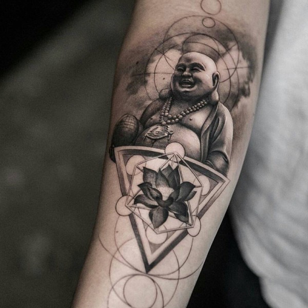 手臂弥勒佛几何莲花刺青图片