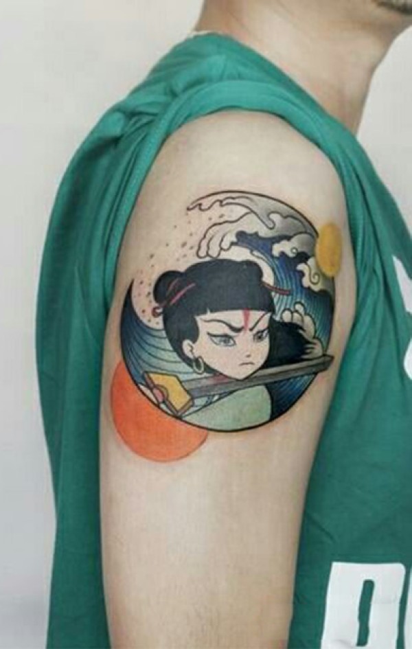 手臂哪吒卡通彩绘纹身图案