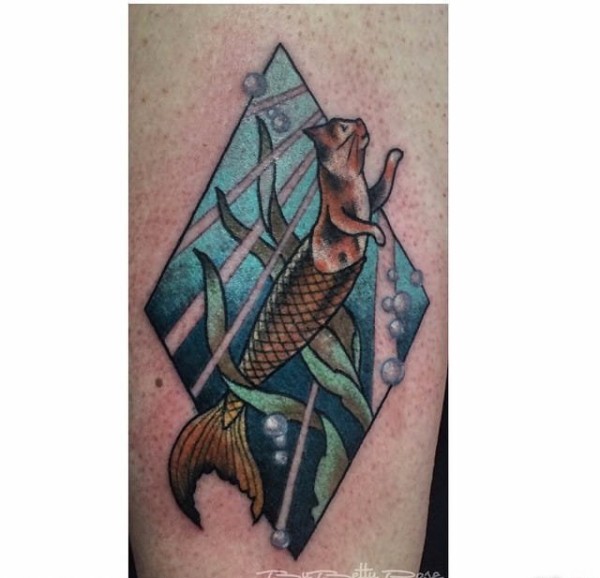 14款彩色纹身动物猫脸纹身美人鱼纹身图案大全图片