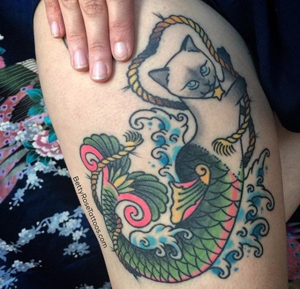 14款彩色纹身动物猫脸纹身美人鱼纹身图案大全图片