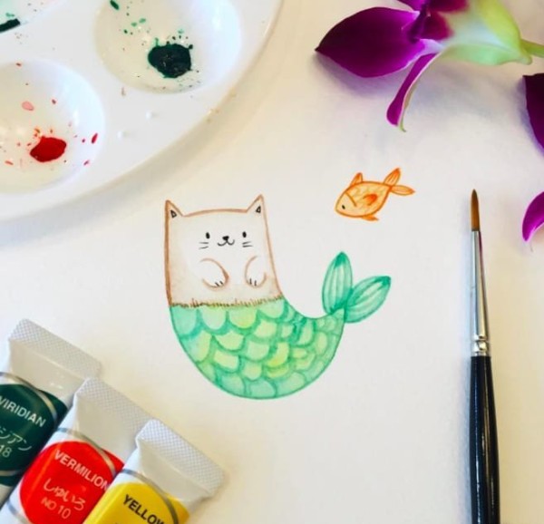14款彩色纹身动物猫脸纹身美人鱼纹身图案大全图片