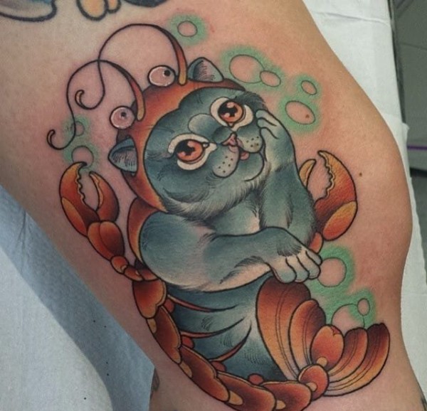 14款彩色纹身动物猫脸纹身美人鱼纹身图案大全图片