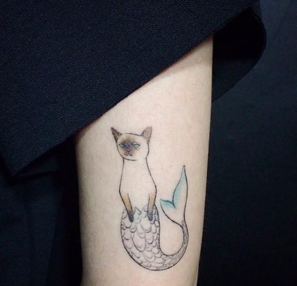 14款彩色纹身动物猫脸纹身美人鱼纹身图案大全图片