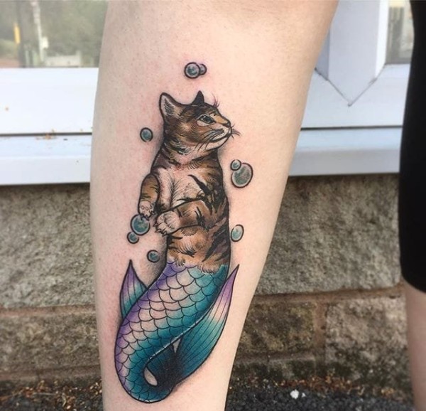 14款彩色纹身动物猫脸纹身美人鱼纹身图案大全图片