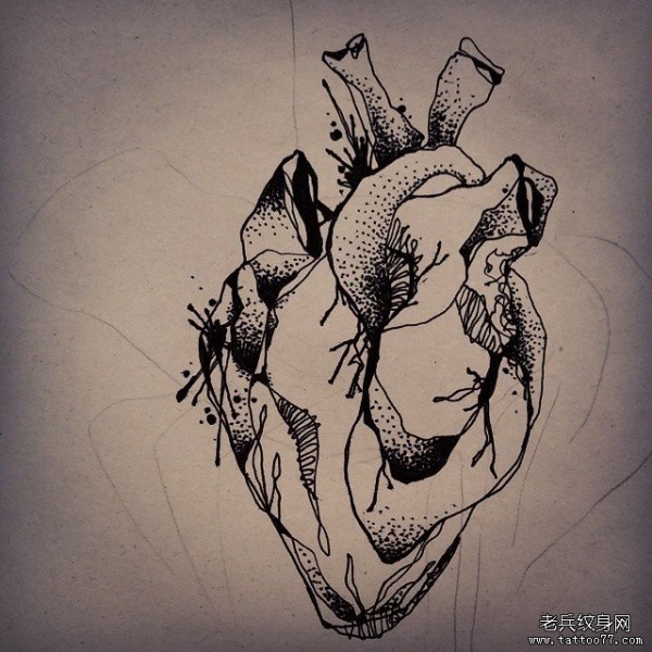 欧美心脏线条点刺纹身图案手稿