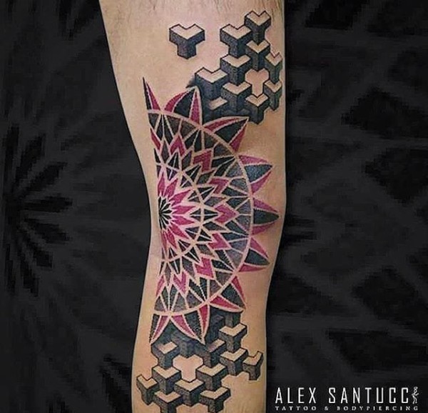 手臂上彩色几何点刺纹身曼陀罗图案纹身