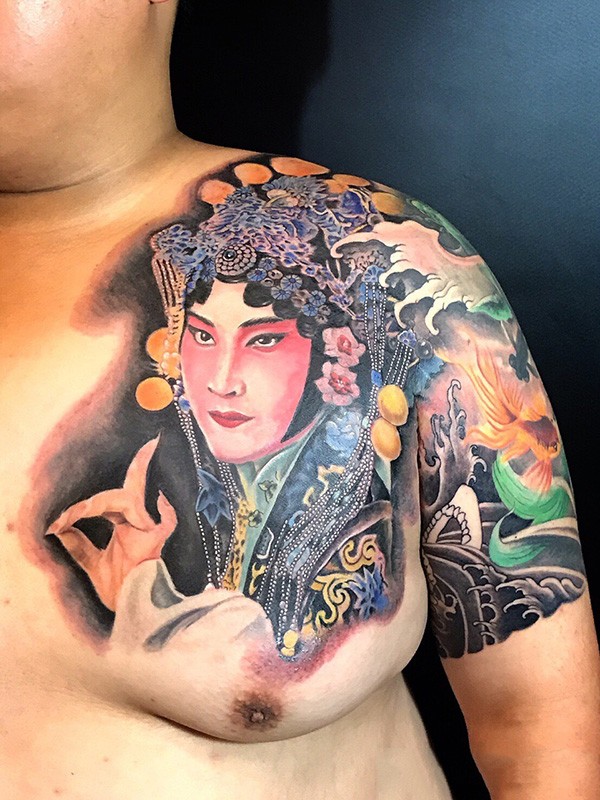 国韵芳华,半甲花旦彩绘纹身