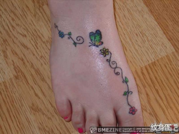 清新小桃花脚踝纹身_脚部纹身图案大全_纹身图吧