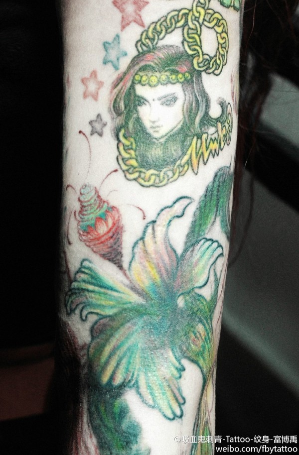 新盖中盖.帮学生@Linda的微bo 做的整只花臂遮盖