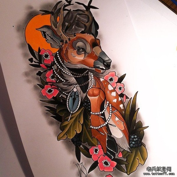 一组18张漂亮的欧美newschool动物纹身手稿图案