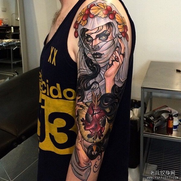 school花臂纹身--一组漂亮的school风格的花臂纹身图案作品