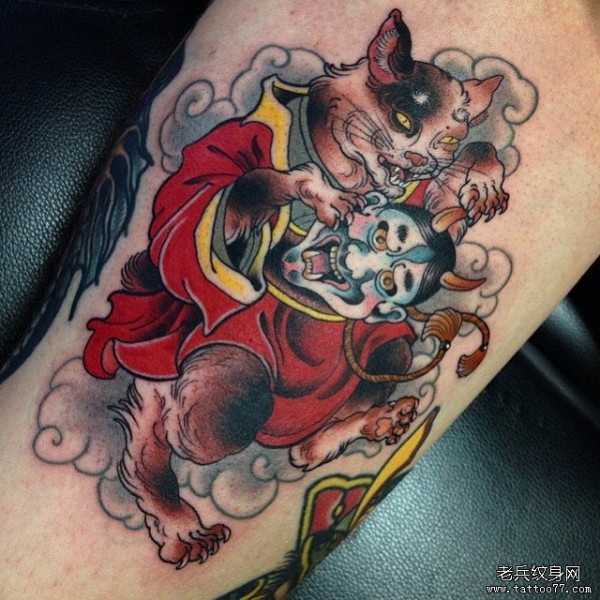 大臂传统猫般若纹身图案