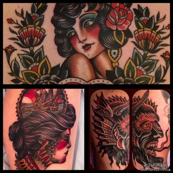 经典的一组oldschool风格的纹身彩图作品