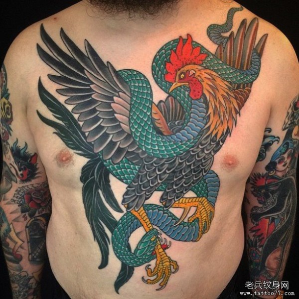 花胸old school 公鸡 蛇纹身图案
