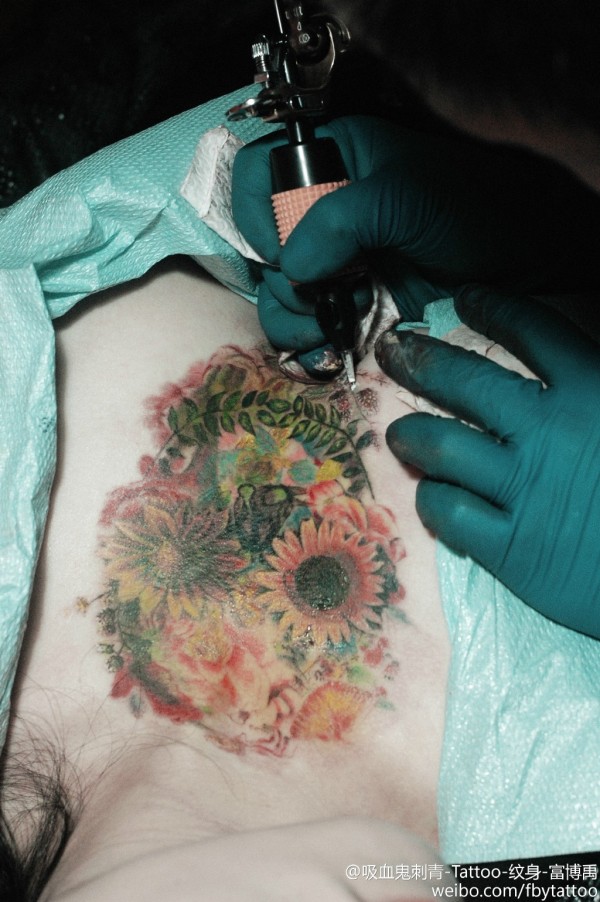 侧腰女骷髅刺青图案图片_骷髅纹身图案大全_纹身图吧