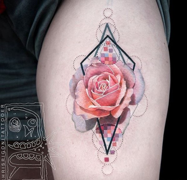 漂亮的花朵纹身粉红小清新几何花纹身图案