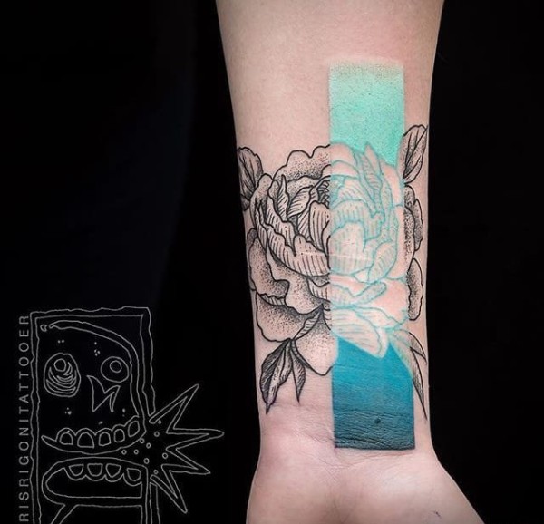欧美玫瑰纹身 男生手臂上花朵纹身图片