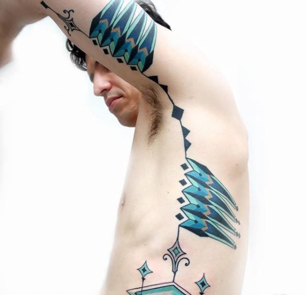 16款彩色简单个性线条纹身动物和几何花臂纹身图案