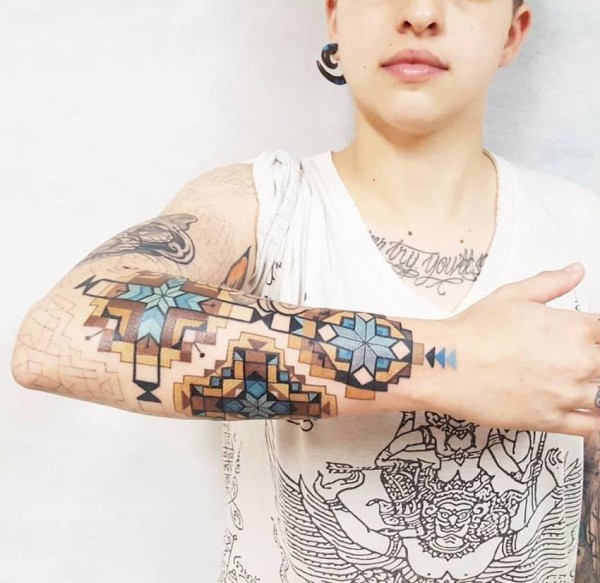 16款彩色简单个性线条纹身动物和几何花臂纹身图案