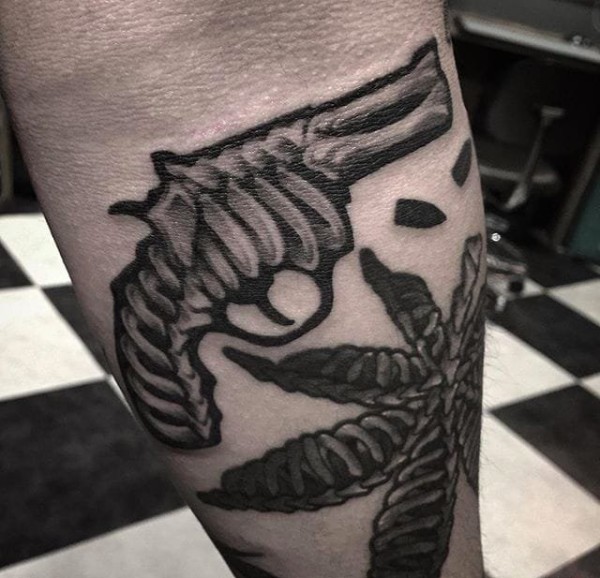 黑色的x射线纹身骨头和骷髅头纹身图案