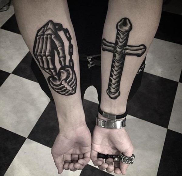 黑色的x射线纹身骨头和骷髅头纹身图案