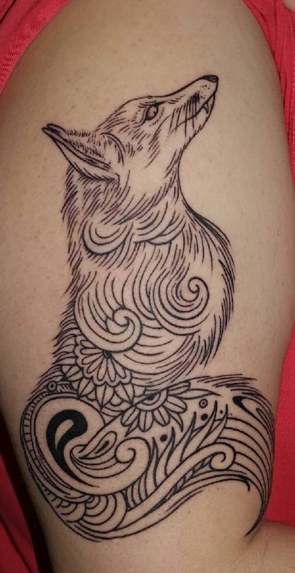 美女手臂简单个性线条纹身动物狐狸纹身图片