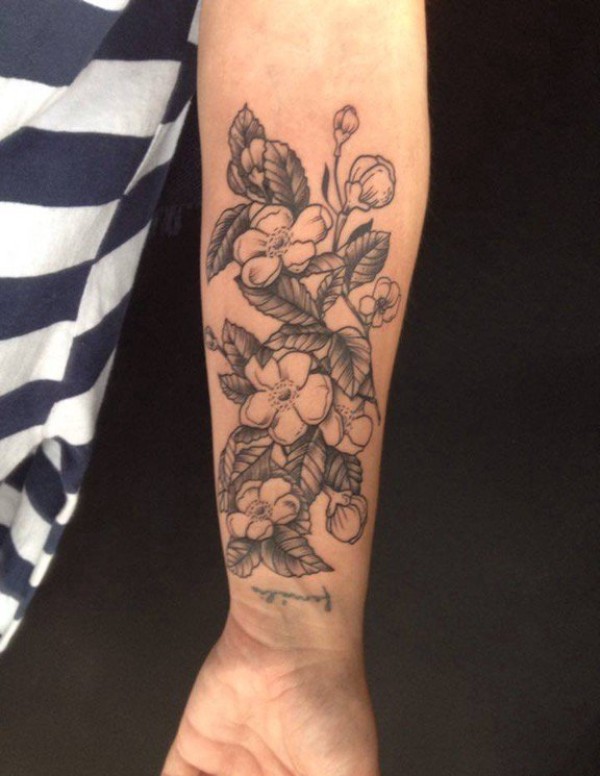 后肩唯美花藤英文图案图片_植物纹身图案大全_纹身图吧