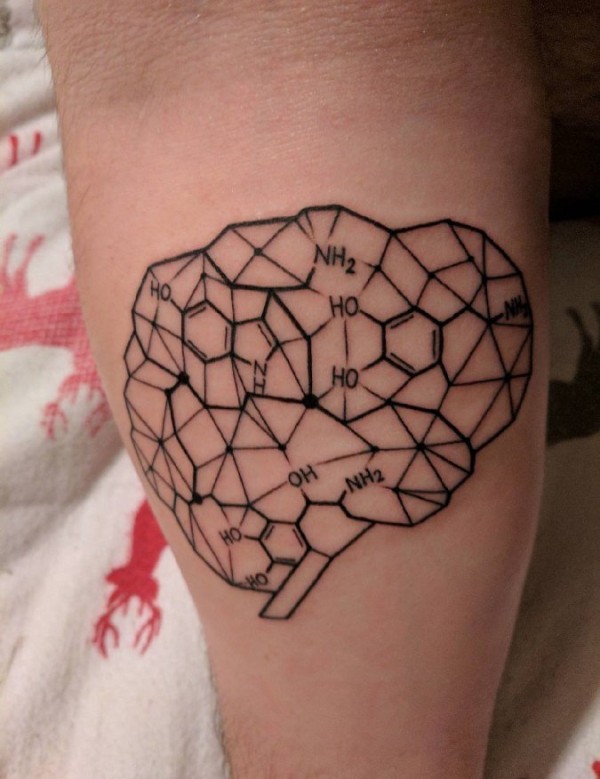 小腿上简单个性线条纹身黑色化学元素纹身细胞图片