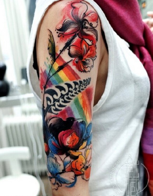 手臂彩色泼墨纹身图案