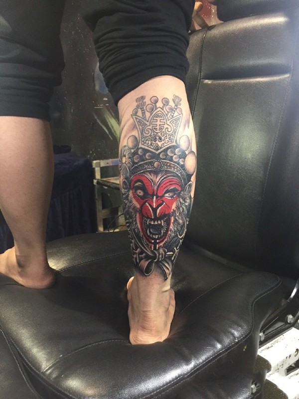 腿部变化莫测,,三头六臂的孙大圣纹身