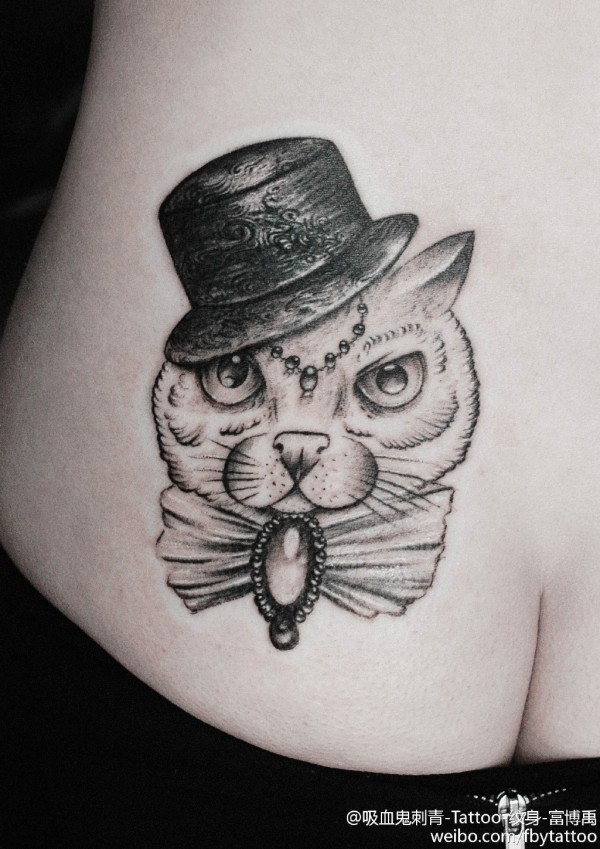 女生后腰纹身黑白灰风格抽象线条纹身图案