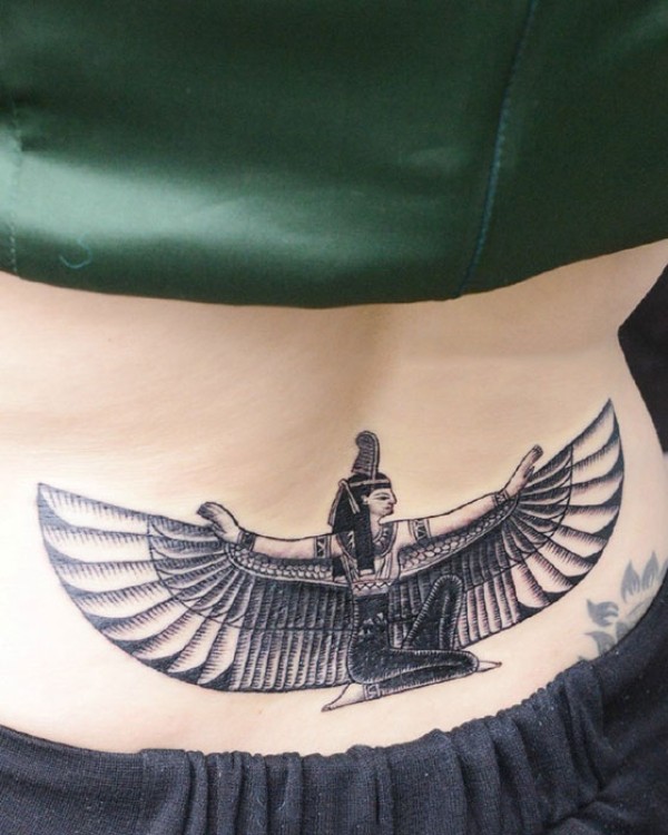 女生后腰纹身黑白灰风格抽象线条纹身图案