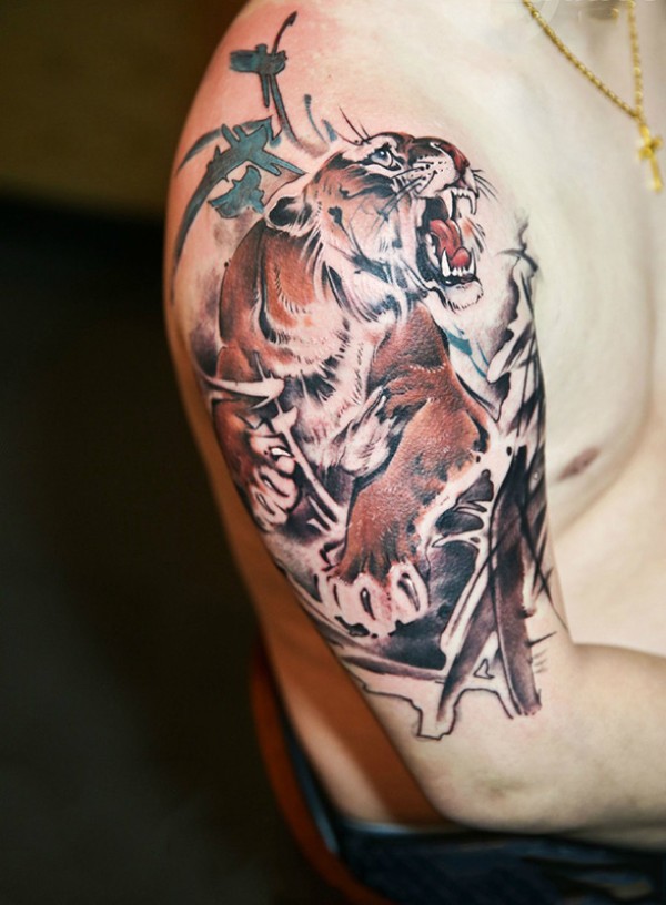 霸气半胛老虎纹身_动物纹身图案大全_纹身图吧