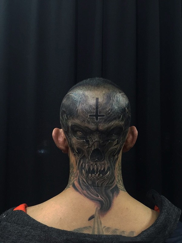 霸气男头部时尚纹身图片_头部纹身图案大全_纹身图吧