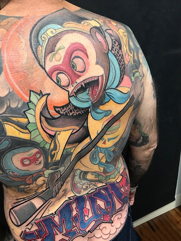 满背齐天大圣卡通彩绘纹身图案