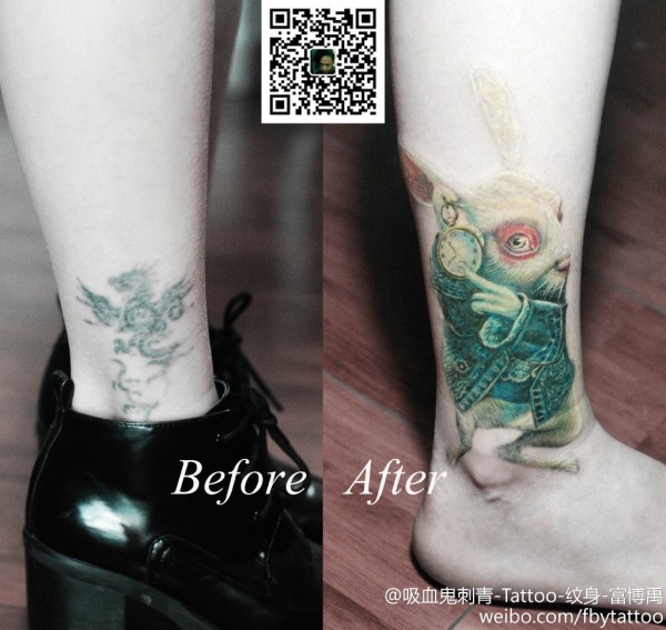 奇怪的兔子,各种风格兔子纹身图案