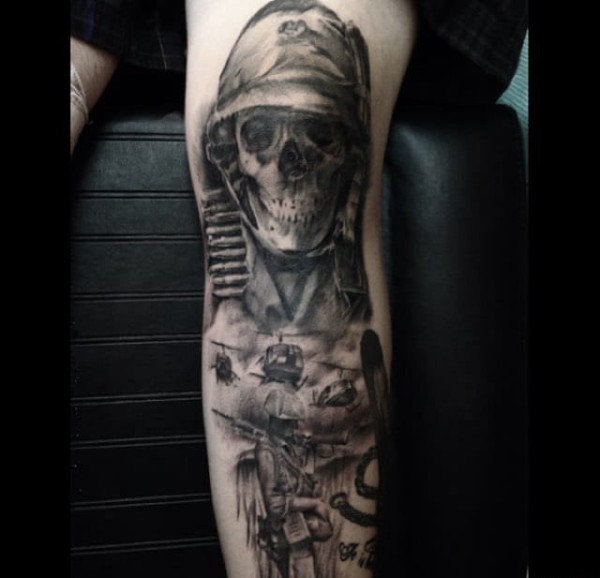 黑灰色点刺纹身人物肖像纹身战争场景纹身图案