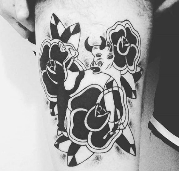 简单个性线条纹身动物公牛头纹身和毕加索纹身图案