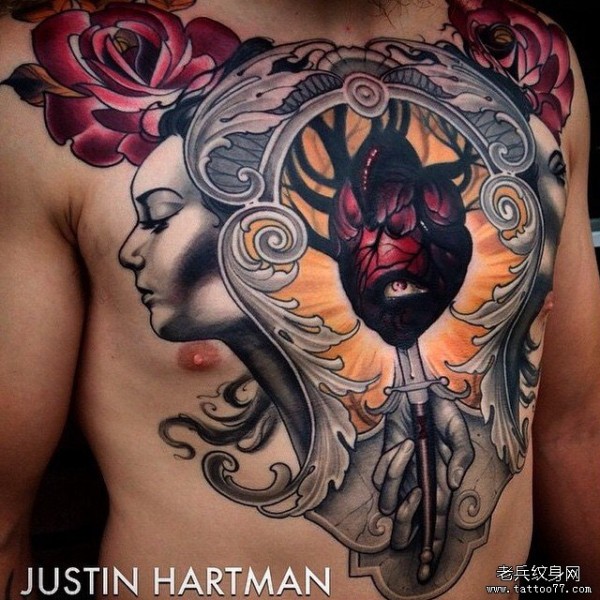 school花臂纹身--一组漂亮的school风格的花臂纹身图案作品