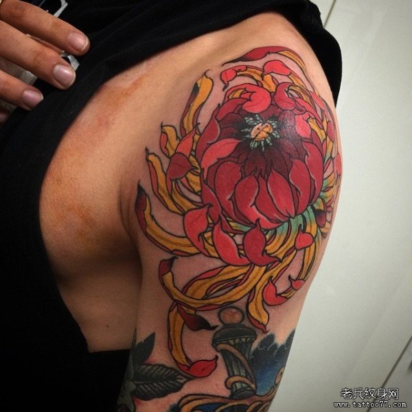 大臂传统菊花彩绘纹身图案