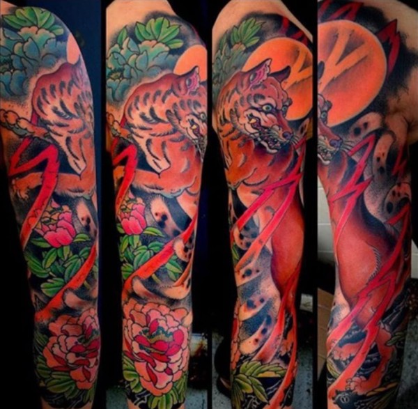 神奇民间传说九尾狐纹身日式纹身花臂和满背纹身图案
