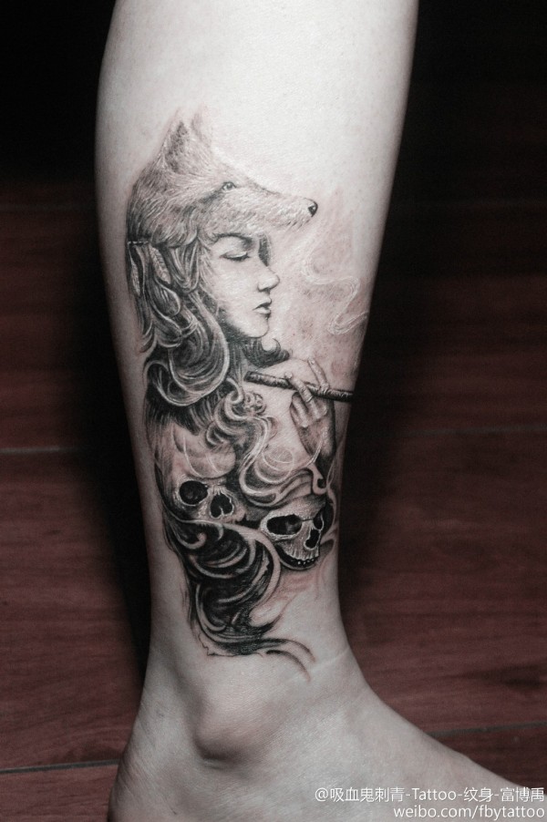 男生小腿死神纹身_腿部纹身图案大全_纹身图吧