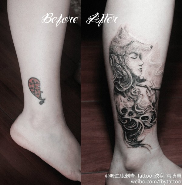 花腿纹身--一组大黑腿纹身图案作品欣赏