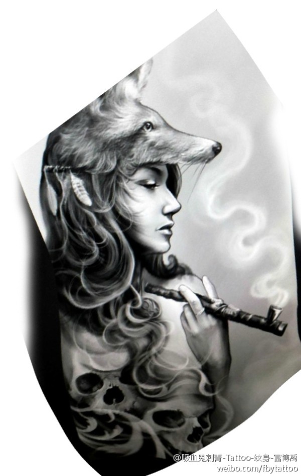 一组16张狐狸纹身手稿素材图案